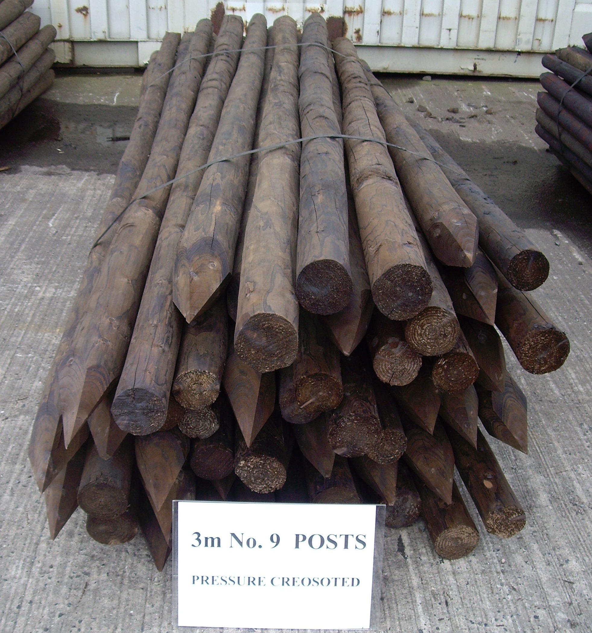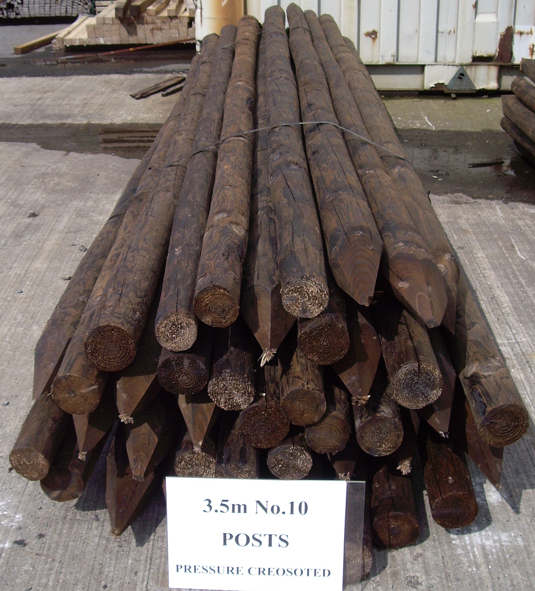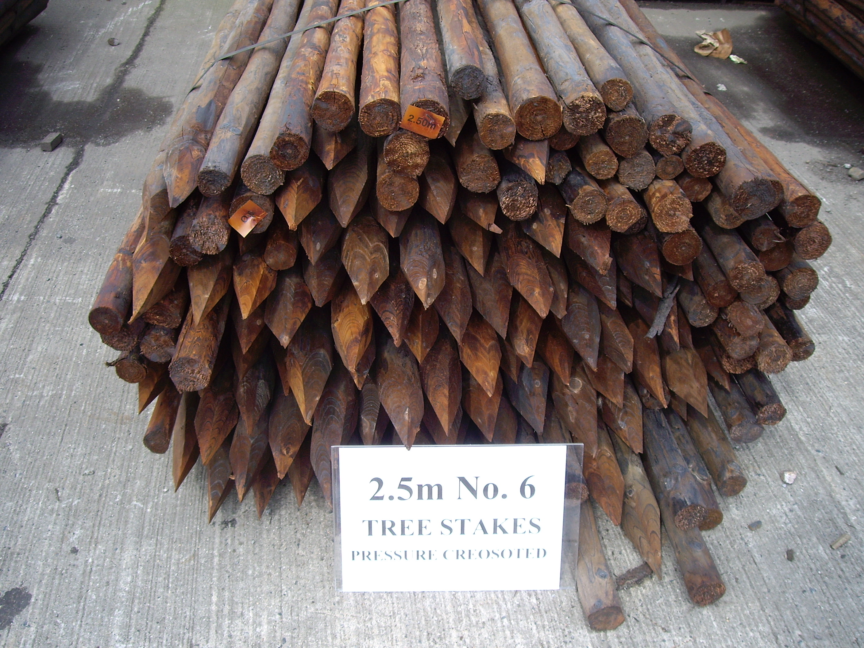 2.5m No.6 peeled, pointed and creosoted